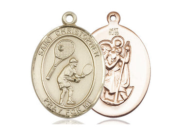 14kt Solid Gold St. Christopher/Tennis Medal 1 x 3/4