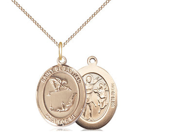 Embrace your faith with timeless elegance. This exquisite Gold Filled Saint Sebastian / Gymnastics Necklace, measuring 3/4 x 1/2, is meticulously handcrafted in the USA by Bliss, a renowned name in religious jewelry. The durable 18-inch Gold Filled curb chain gracefully drapes with a secure lobster clasp for a comfortable, everyday wear. The is a patron saint of athletes, soldiers.