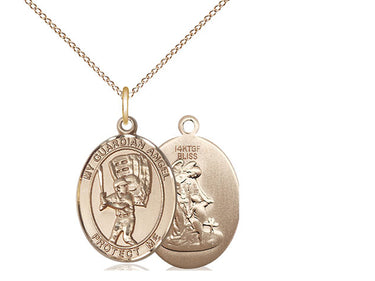 Embrace your faith with timeless elegance. This exquisite Gold Filled Guardian Angel / Baseball Necklace, measuring 3/4 x 1/2, is meticulously handcrafted in the USA by Bliss, a renowned name in religious jewelry. The durable 18-inch Gold Filled curb chain gracefully drapes with a secure lobster clasp for a comfortable, everyday wear.