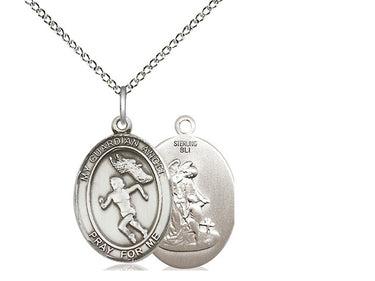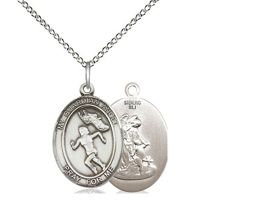 Sterling Silver Guardian Angel/Track&Field Pendant Necklace 3/4 x 1/2 - 18 Inch Chain