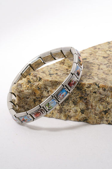 Small Stainless Steel Catholic Bracelet | Holy Images | Stretchable Religious Bracelet
