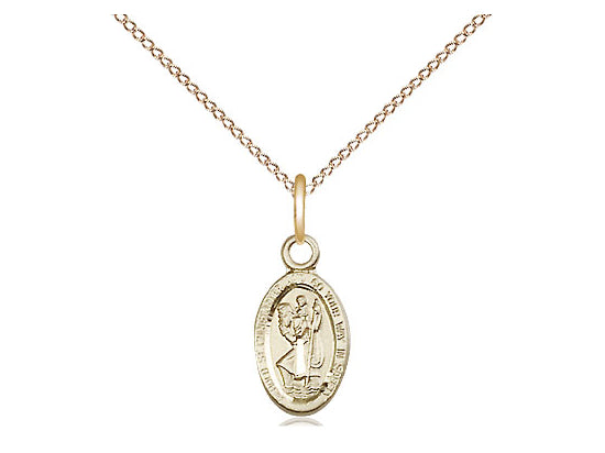 Small 14kt Gold Filled St. Christopher Pendant Necklace 1/2 x 1/4 - 18 Inch Chain