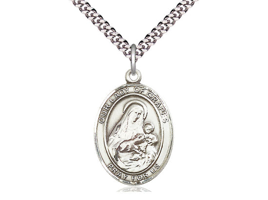 Sterling Silver Our Lady of Grapes Pendant Necklace 1 x 3/4 - 24 Inch Chain