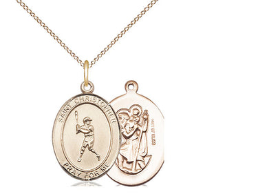 14kt Gold Filled St. Christopher/Baseball Pendant Necklace 3/4 x 1/2 - 18 Inch Chain