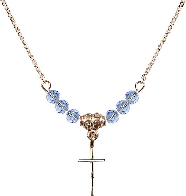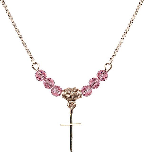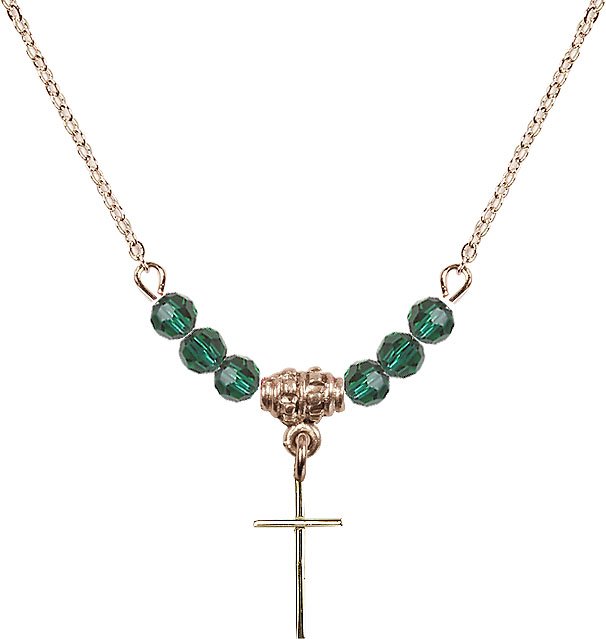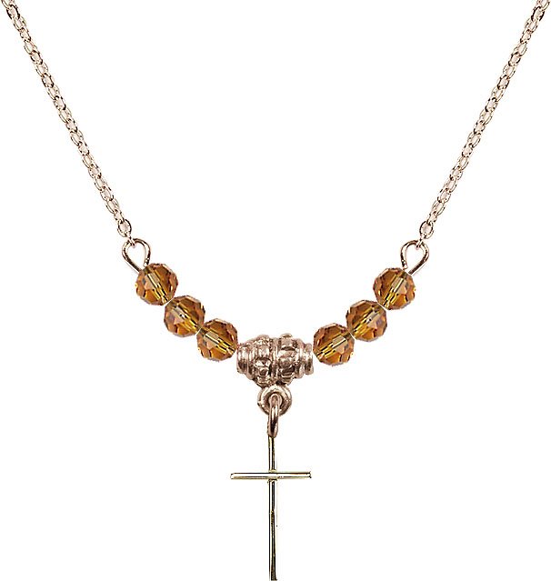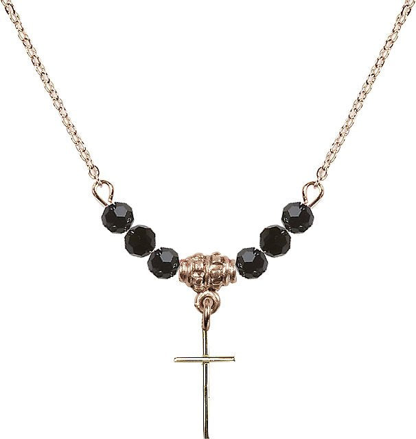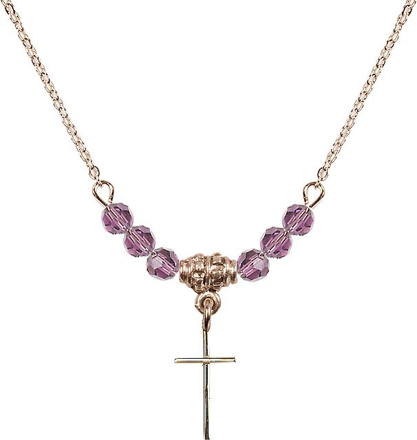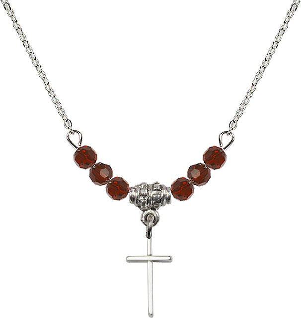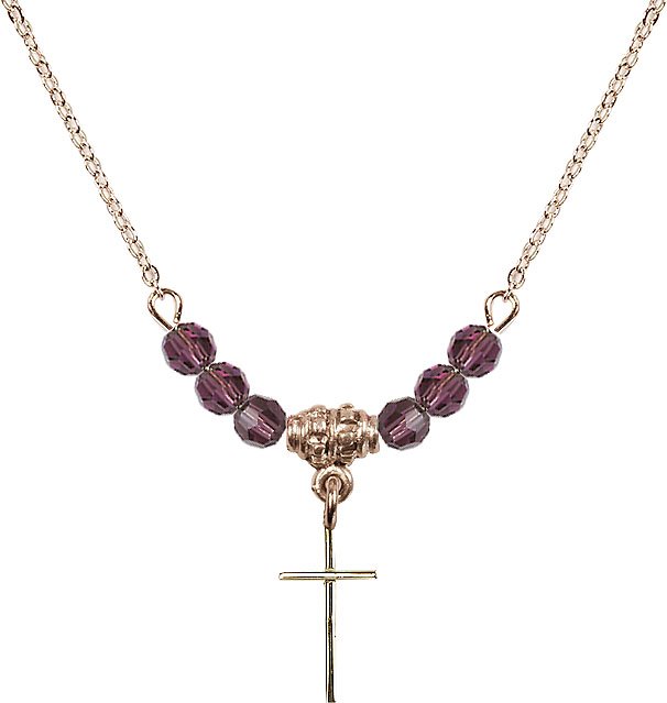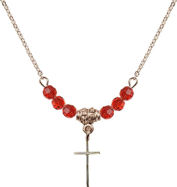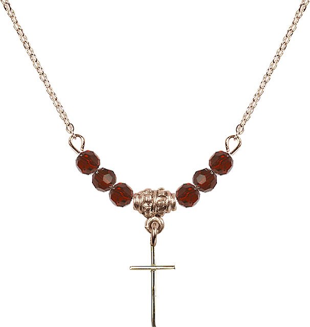18" Hamilton Gold Plated Necklace with 4mm Garnet Crystal Beads featuring a 14kt Gold Filled Cross Medal.