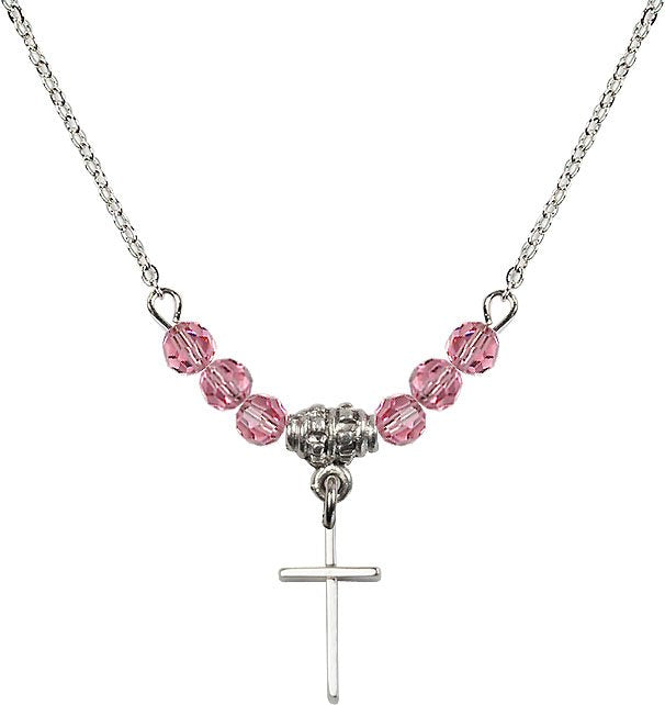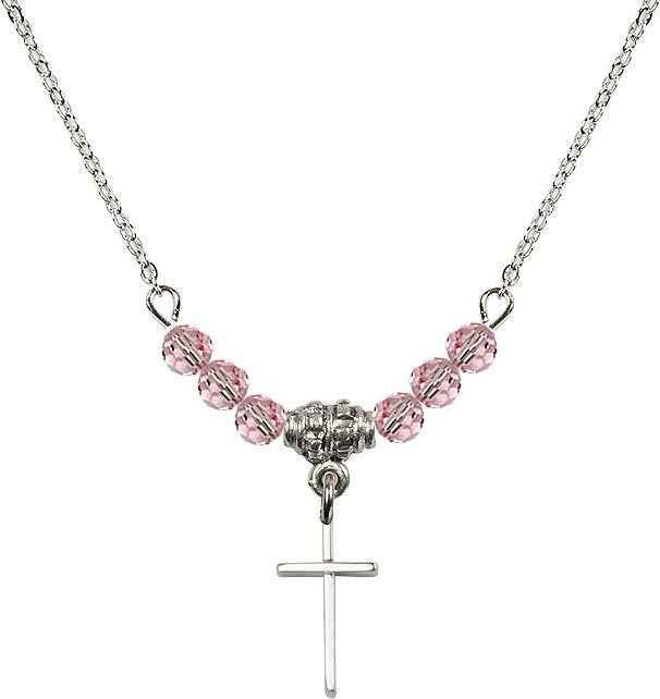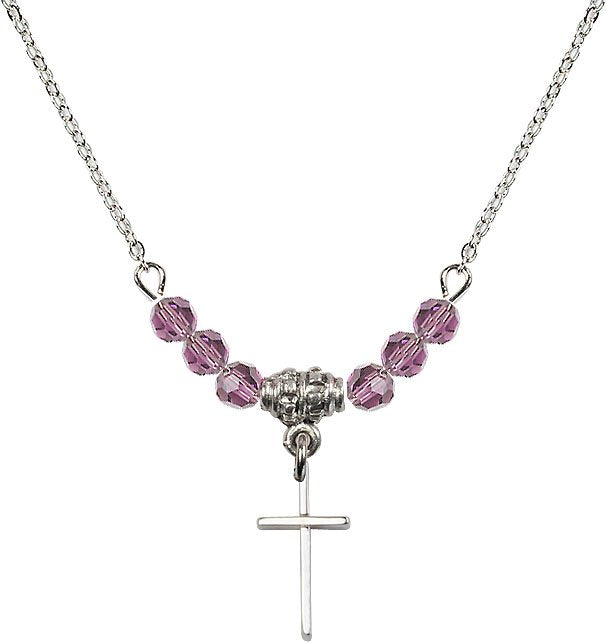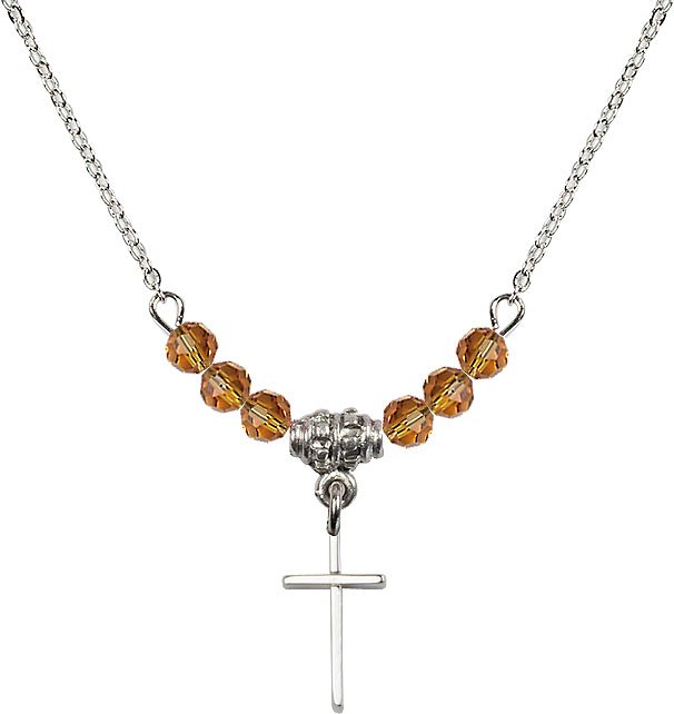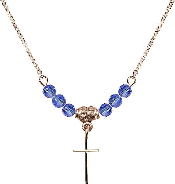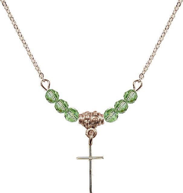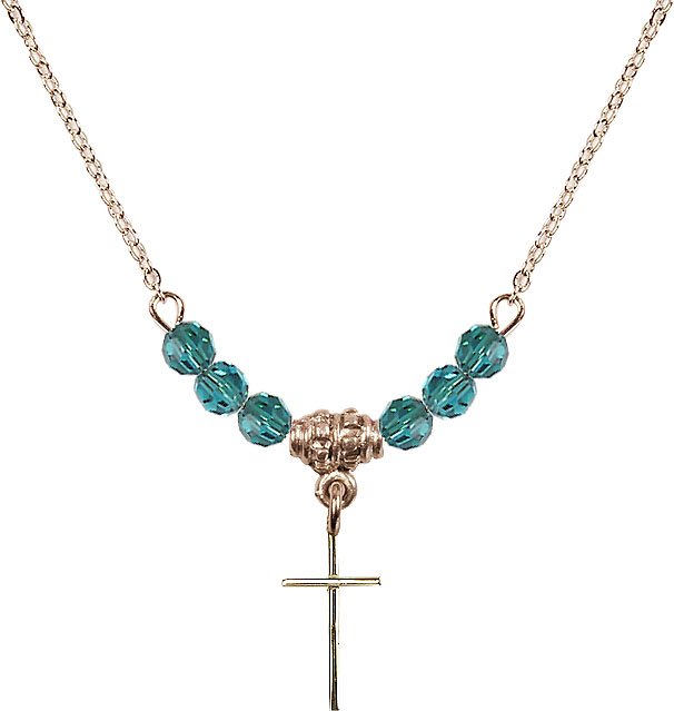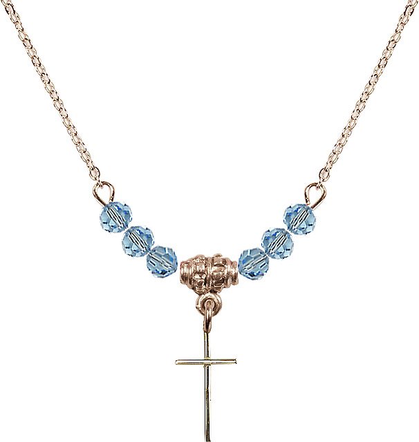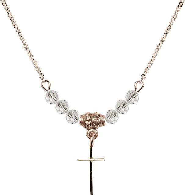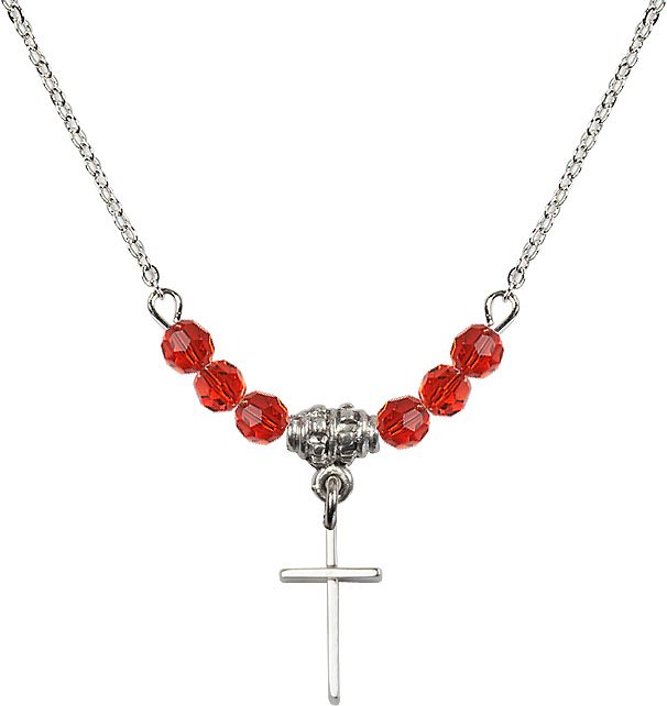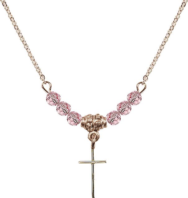 18" Hamilton Gold Plated Necklace with 4mm Garnet Crystal Beads featuring a 14kt Gold Filled Cross Medal.