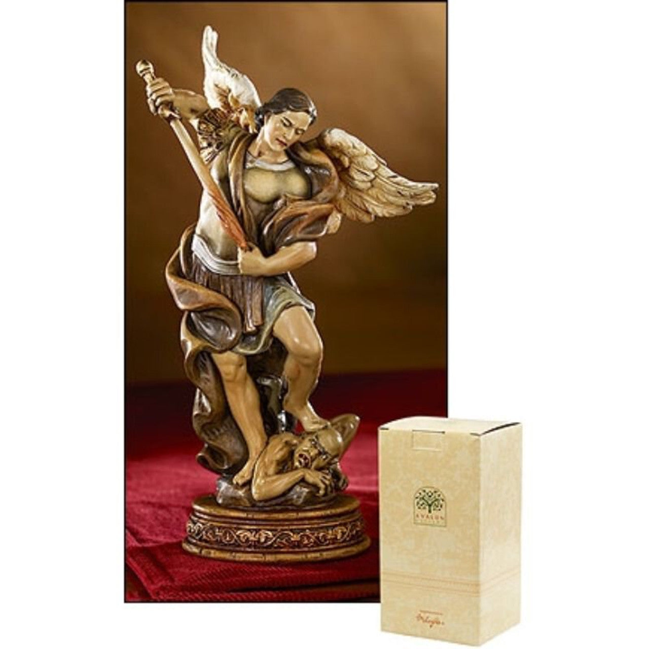 - Detailed Craftsmanship: The intricate details and lifelike features bring St. Michael to life, capturing his strength and determination.