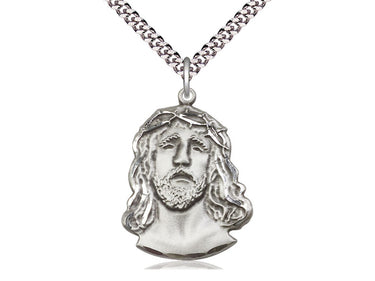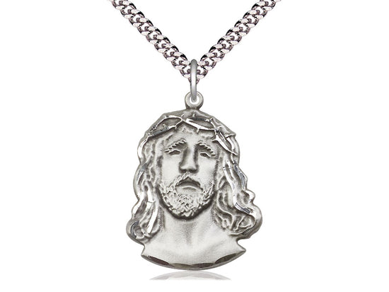Large Sterling Silver Ecce Homo Pendant Necklace 1 1/4 x 7/8 - 24 Inch Chain