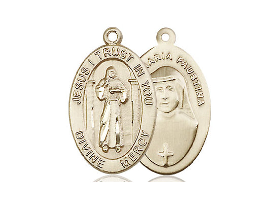 14kt Solid Gold Divine Mercy Medal 7/8 x 1/2