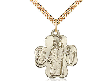 Embrace your faith with timeless elegance. This exquisite Gold Filled Irish Shamrock Necklace, measuring 1 X 7/8, is meticulously handcrafted in the USA by Bliss, a renowned name in religious jewelry. The durable 24-inch Gold Filled curb chain gracefully drapes with a secure lobster clasp for a comfortable, everyday wear.