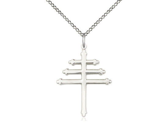 Embrace your faith with timeless elegance. This exquisite Sterling Silver Marionite Cross Necklace, measuring 1 x 3/4, is meticulously handcrafted in the USA by Bliss, a renowned name in religious jewelry. The durable 18-inch Sterling Silver curb chain gracefully drapes with a secure lobster clasp for a comfortable, everyday wear.