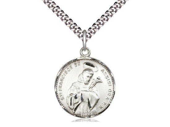 Sterling Silver St. Francis of Assisi Pendant Necklace 7/8 x 3/4 - 24 Inch Chain