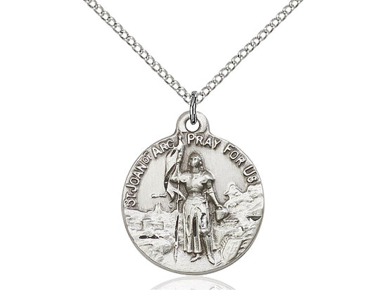 Sterling Silver St. Joan of Arc Pendant Necklace 7/8 x 3/4 - 18 Inch Chain