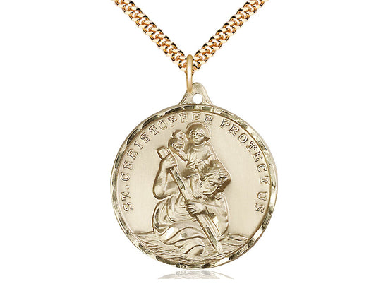 Large 14kt Gold Filled St. Christopher Pendant Necklace 1 3/8 x 1 1/8 - 24 Inch Chain