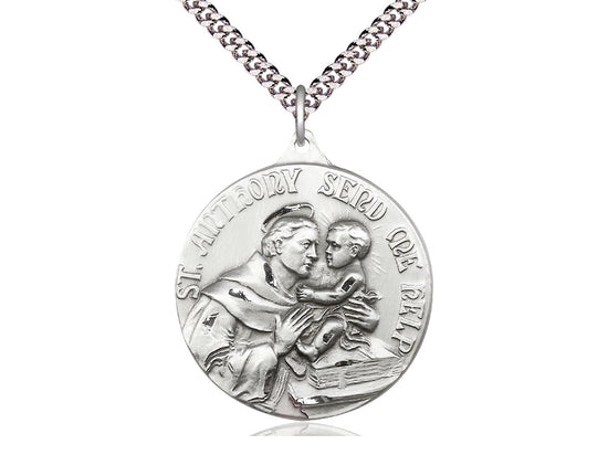 Large Sterling Silver St. Anthony Pendant Necklace 1 3/8 x 1 1/8 - 24 Inch Chain