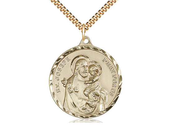 Large 14kt Gold Filled St. Joseph Pendant Necklace 1 3/8 x 1 1/8 - 24 Inch Chain