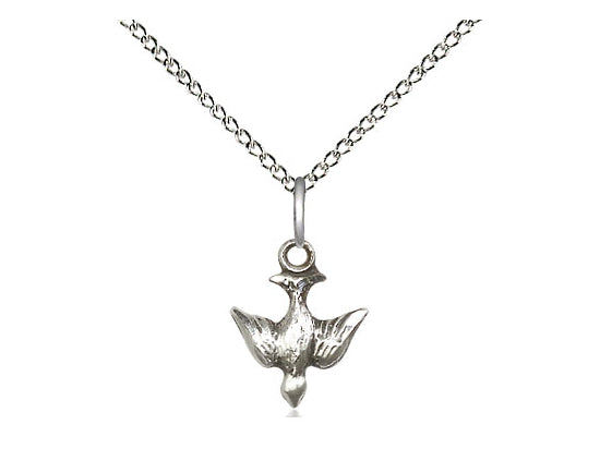 Small Sterling Silver Holy Spirit Pendant Necklace 1/2 x 3/8 - 18 Inch Chain