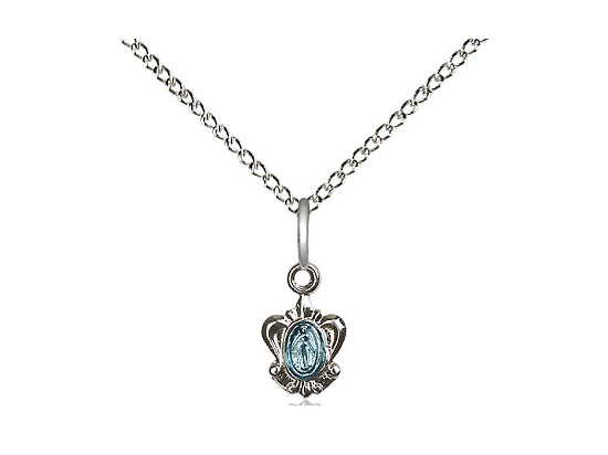 Small Sterling Silver Miraculous Pendant Necklace 3/8 x 1/4 - 18 Inch Chain