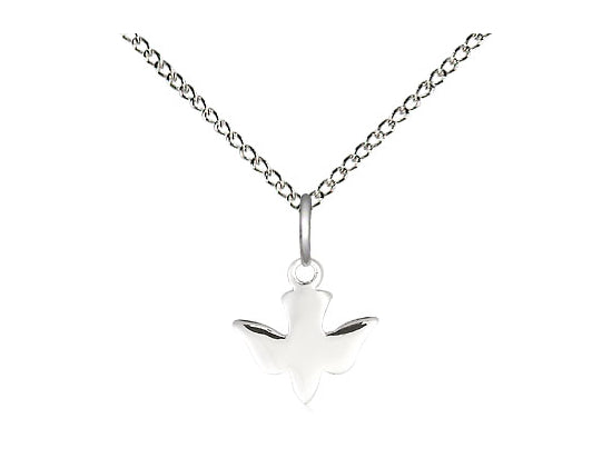 Small Sterling Silver Holy Spirit Pendant Necklace 3/8 x 3/8 - 18 Inch Chain