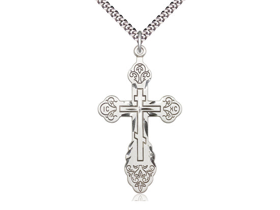 Extra Large Sterling Silver Cross Pendant Necklace 1 7/8 x 1 - 24 Inch Chain