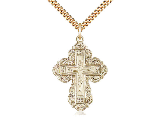 Large 14kt Gold Filled Irene Cross Pendant Necklace 1 1/4 x 7/8 - 24 Inch Chain