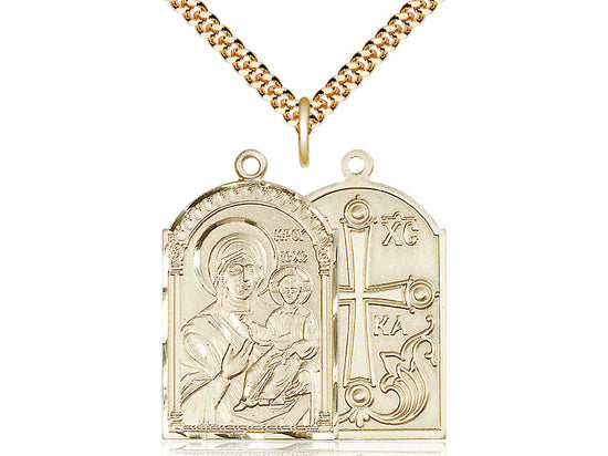 14kt Gold Filled Mother of God Pendant Necklace 1 1/8 x 5/8 - 24 Inch Chain