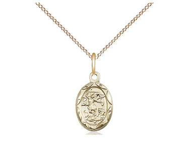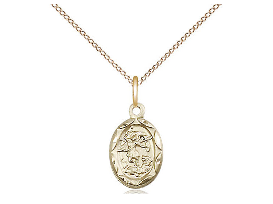 Small 14kt Gold Filled St. Michael the Archangel Pendant Necklace 1/2 x 1/4 - 18 Inch Chain