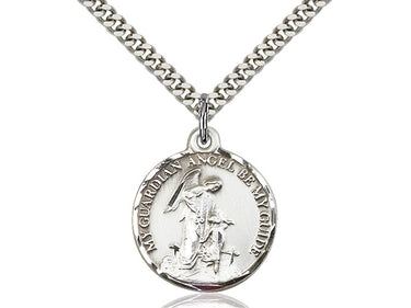 Sterling Silver Guardian Angel Pendant Necklace 7/8 x 3/4 - 24 Inch Chain