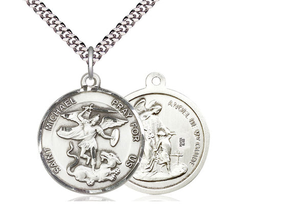 Sterling Silver St. Michael the Archangel Pendant Necklace 1 x 7/8 - 24 Inch Chain