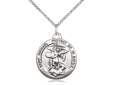 Sterling Silver St. Michael the Archangel Pendant Necklace 7/8 X 3/4 - 18 Inch Chain