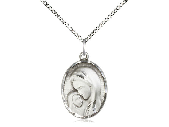 Sterling Silver Madonna & Child Pendant Necklace 3/4 x 1/2 - 18 Inch Chain