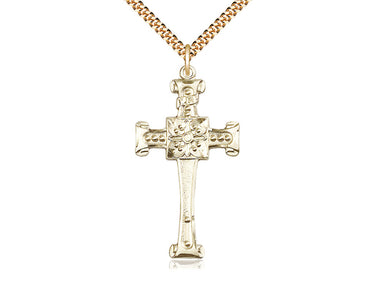 Embrace your faith with timeless elegance. This exquisite Gold Filled Cross Necklace, measuring 1 3/4 x 7/8, is meticulously handcrafted in the USA by Bliss, a renowned name in religious jewelry. The durable 24-inch Gold Filled curb chain gracefully drapes with a secure lobster clasp for a comfortable, everyday wear.
