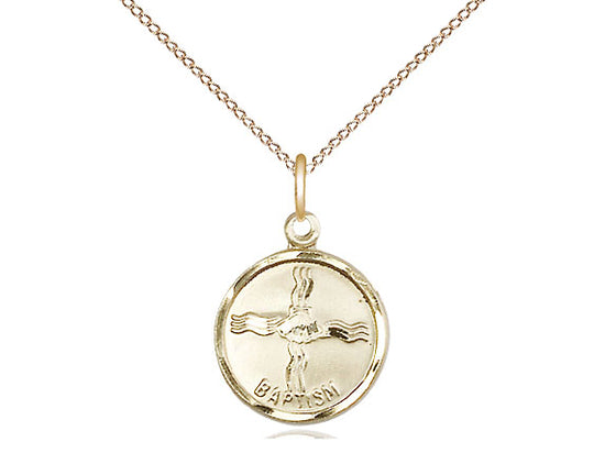 Small 14kt Gold Filled Baptism Pendant Necklace 5/8 x 1/2 - 18 Inch Chain
