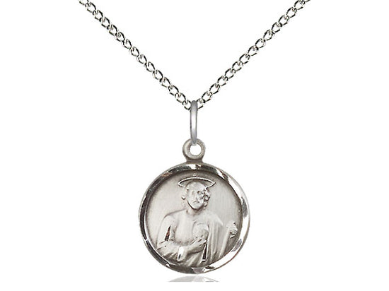 Small Sterling Silver St. Jude Pendant Necklace 5/8 x 1/2 - 18 Inch Chain