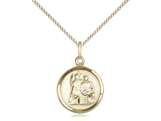 Small 14kt Gold Filled St. Raphael the Archangel Pendant Necklace 5/8 x 1/2 - 18 Inch Chain