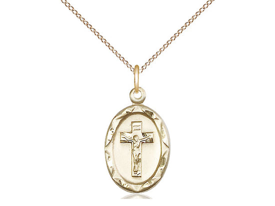 14kt Gold Filled Crucifix Pendant Necklace 3/4 x 3/8 - 18 Inch Chain