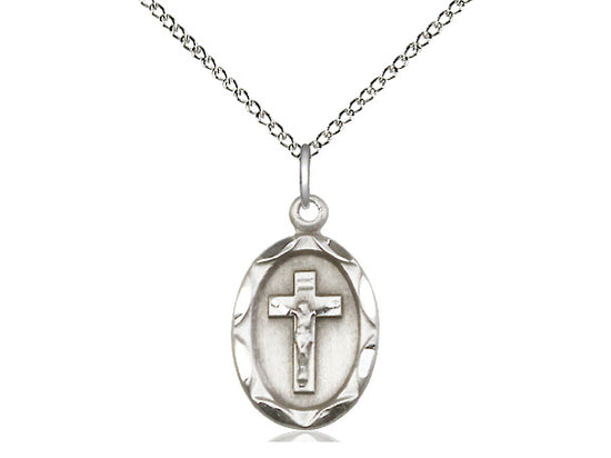 Sterling Silver Crucifix Pendant Necklace 3/4 x 3/8 - 18 Inch Chain