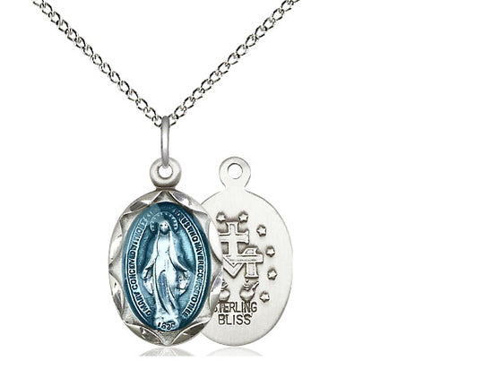 Sterling Silver Miraculous Pendant Necklace 3/4 x 3/8 - 18 Inch Chain