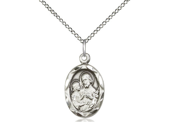 Sterling Silver St. Joseph Pendant Necklace 3/4 x 3/8 - 18 Inch Chain
