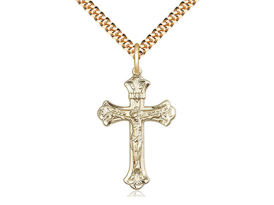 14kt Gold Filled Crucifix Pendant Necklace 1 1/8 x 5/8 - 24 Inch Chain
