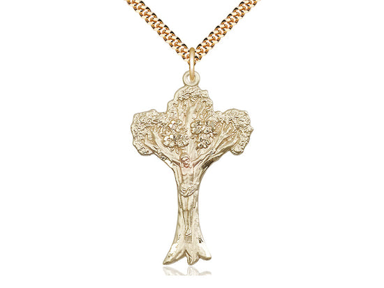 Large 14kt Gold Filled Tree of Life Crucifix Pendant Necklace 1 5/8 x 1 - 24 Inch Chain