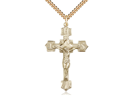 Large 14kt Gold Filled Crucifix Pendant Necklace 1 3/4 x 1 1/8 - 24 Inch Chain