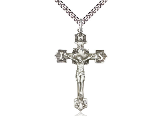 Large Sterling Silver Crucifix Pendant Necklace 1 3/4 x 1 1/8 - 24 Inch Chain