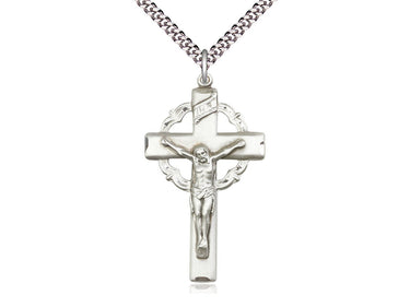 Large Sterling Silver Crucifix Pendant Necklace 1 5/8 x 1 - 24 Inch Chain