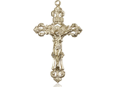 Exquisite 14KT Gold Crucifix Pendant (1 7/8 x 1 1/8) on Chain with Lobster Clasp - Handmade in the USA by Bliss