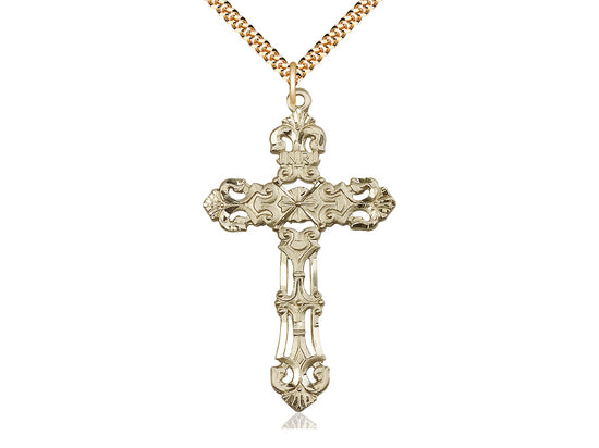 Extra Large 14kt Gold Filled Cross Pendant Necklace 2 1/8 x 1 1/4 - 24 Inch Chain