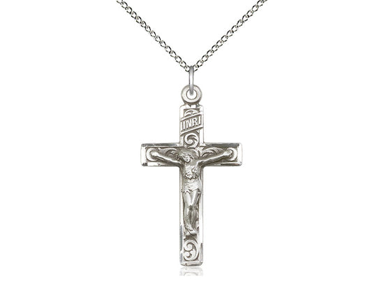 Large Sterling Silver Crucifix Pendant Necklace 1 1/4 x 3/4 - 18 Inch Chain