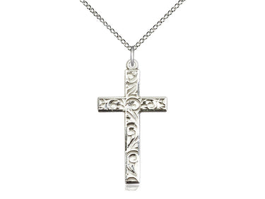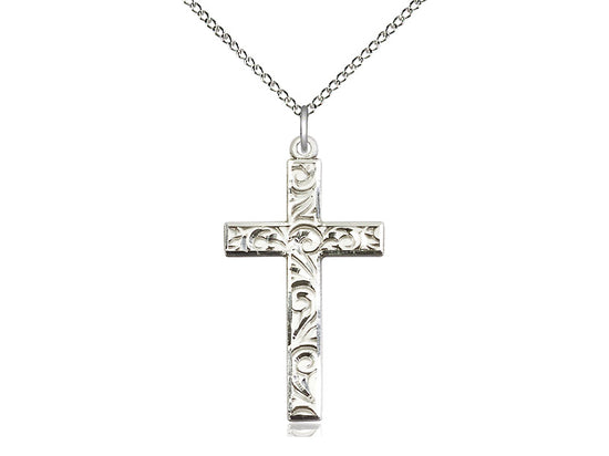 Large Sterling Silver Cross Pendant Necklace 1 1/4 x 5/8 - 18 Inch Chain