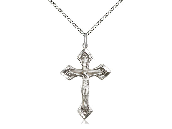 Sterling Silver Crucifix Pendant Necklace 1 1/8 x 3/4 - 18 Inch Chain