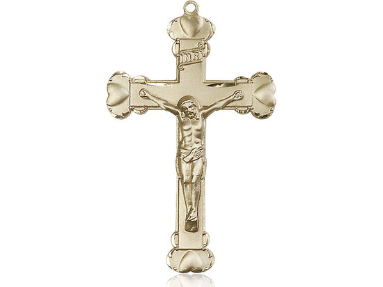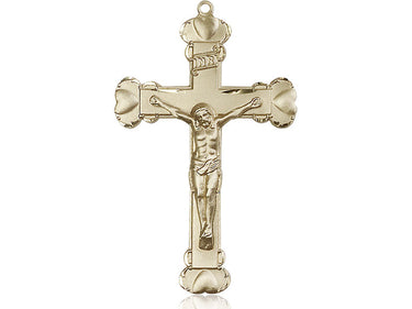 Exquisite 14KT Gold Crucifix Pendant (1 3/4 x 1 1/8) on Chain with Lobster Clasp - Handmade in the USA by Bliss